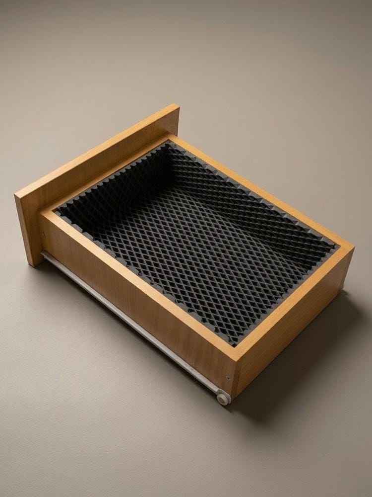 В отличие от обычных тонких пленок, ячеистый защитный коврик для кухонных ящиков обладает уникальной структурой. Его поверхность состоит из глубоких ячеек (ромбов или сот), которые выполняют функцию надежного барьера. Если в ящике под мойкой протечет флакон со средством или вы поставите влажную сковороду на полку, жидкость не впитается в мебель, а останется внутри ячеек вкладыша.