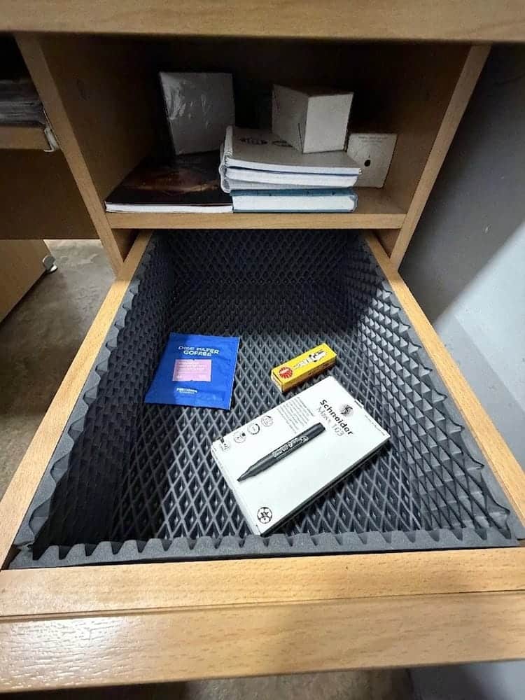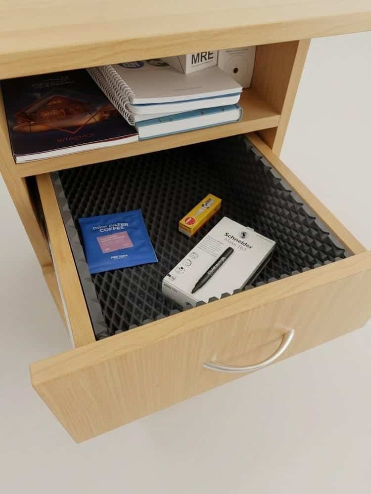 • Шумоизоляция: Мягкий материал гасит грохот посуды и столовых приборов при открытии ящиков.
